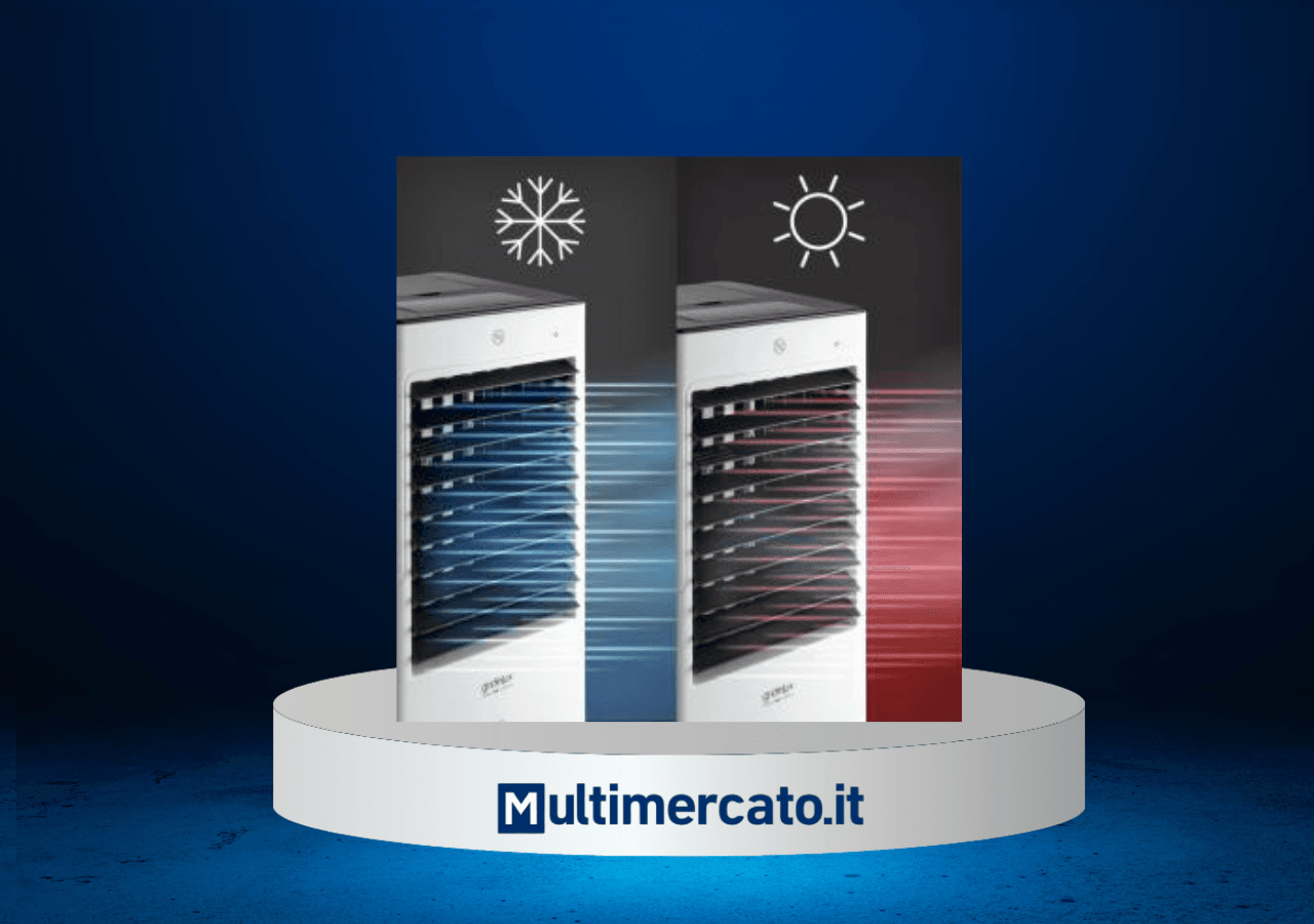 - D’estate: Agisce come un potente raffrescatore e umidificatore. Basta aggiungere acqua o ghiaccio nel serbatoio per generare una corrente d’aria fresca e piacevole, abbassando la temperatura della stanza in modo naturale ed efficiente.